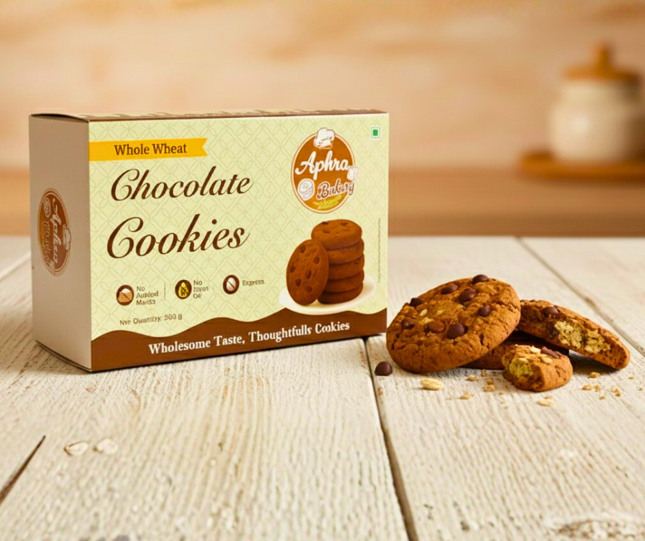 Savor the deep, rich flavour of cocoa blended with the goodness of whole wheat flour — a treat that satisfies your sweet tooth while keeping wellness at heart. At Aphra, we believe indulgence should never come at the cost of health. That’s why our Chocolate Cookies are made with no maida, no palm oil, and no trans fat — only honest, nourishing ingredients that make every crunch both delightful and mindful.